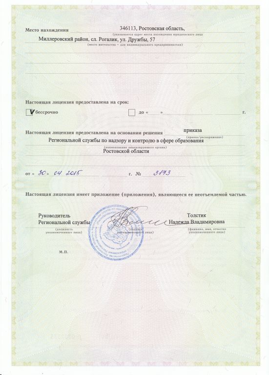 | Адрес местонахождения образовательной организации* | 346113, Ростовская обл, Миллеровский р-н, Рогалик сл, Дружбы ул, дом № 57 |
